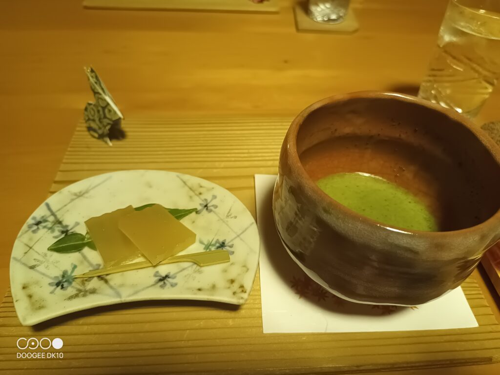 和服の若い女将さんが正座でお出迎え。あじさいの部屋に通され、抹茶とゆずの和菓子でおもてなし。Googleの口コミが4.4に納得です。