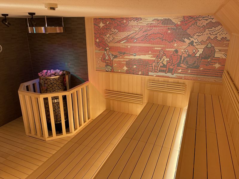露天風呂もロウリュウのサービスが有るサウナもあって、別料金で岩盤浴もできる。