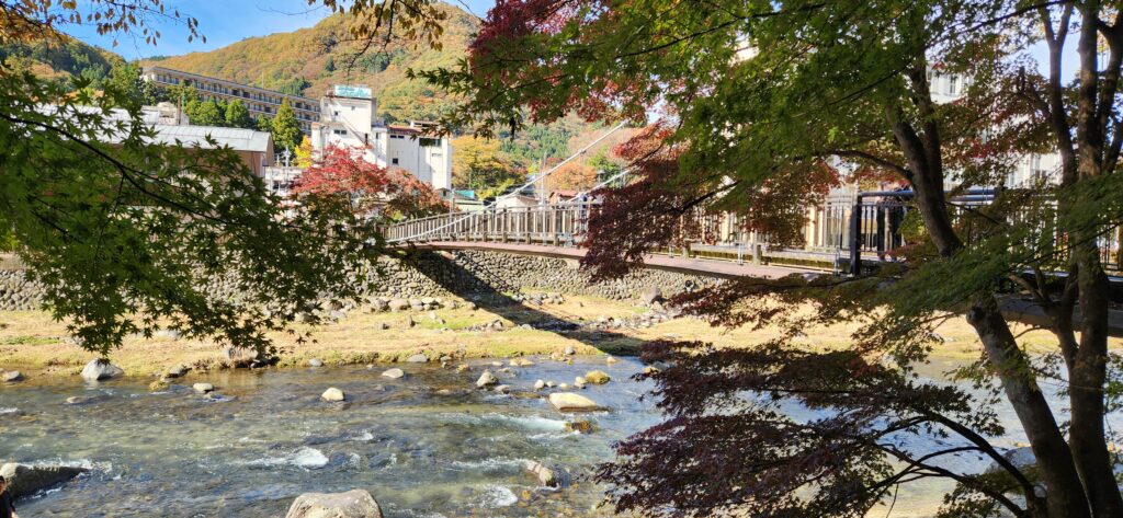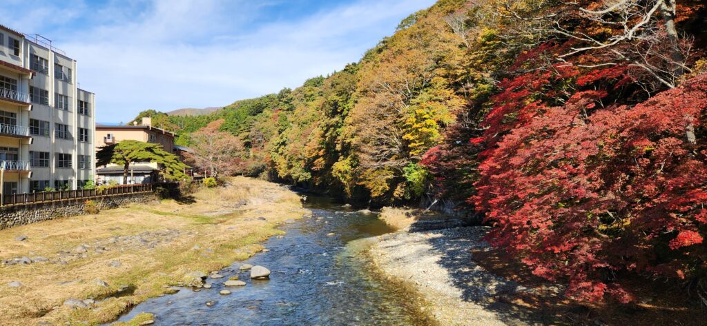 プランによっては、清流と渓谷を臨むテラスのある専用サウナと専用風呂のある部屋もあるようだ。2026年の紅葉の時期に訪れたが、カメムシが大量発生したようで、室内でもガムテープが置いてあり、そーっと、二匹ほど捕獲して外に逃がした。
